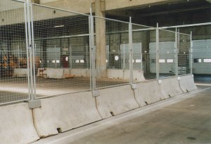 Temporäre Fahrwegsicherung: RAGG-ZACK-Zaunelemente auf Beton-Verkehrsschutzwand montiert L 2,00m x H 2,20m Stahlgitter 50 x 50 x 3